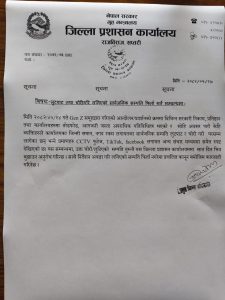 प्रशासनले शुक्रबार एक सूचना जारी गर्दै भदौ २४ गते आन्दोलनको क्रममा सरकारी निकाय, कार्यालय र प्रतिष्ठानमा तोडफोड, आगजनी र लुटपाट गरी लगिएको सार्वजनिक सम्पत्ति ७ दिन भित्र फिर्ता गर्न आग्रह गरेको हो ।